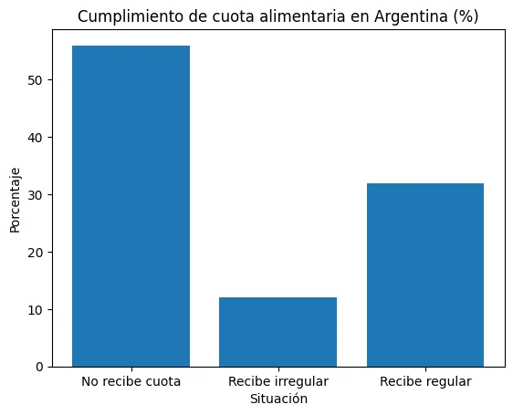 El incumplimento de deberes de asistencia familiar además de ser un delito, es un fenómeno masivo vinculado a la violencia de género con cifras que explican la gravedad. Los datos disponibles a nivel nacional son contundentes, según estudios de UNICEF el 56% de las madres no recibe cuota alimentaria cuando el padre no convive con sus hijos. Si se suman los pagos irregulares o incompletos, el incumplimiento alcanza al 68% de los casos.